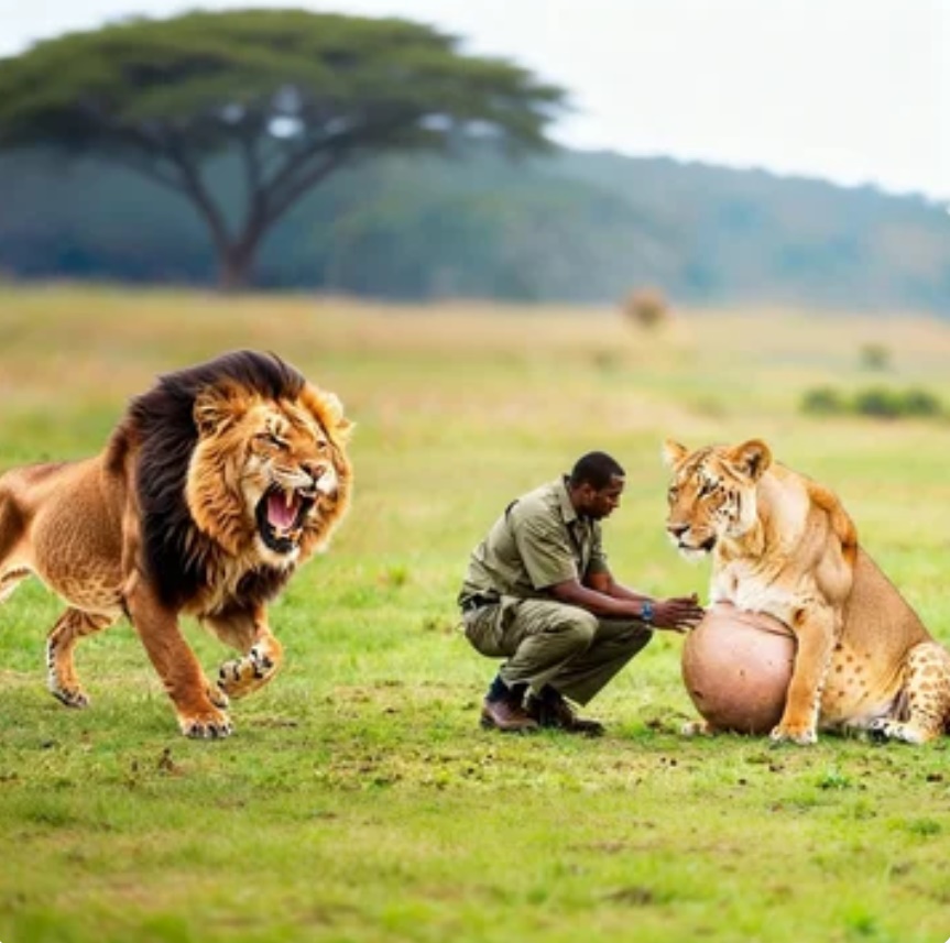 El macho estaba solo, inquieto, lanzando rugidos cortos y nerviosos. Nunca se separaban. Los guardabosques lo siguieron con cautela hasta encontrar a la leona tendida bajo un arbusto, respirando con dificultad. Estaba viva, pero exhausta. El parto había comenzado… y algo no iba bien.