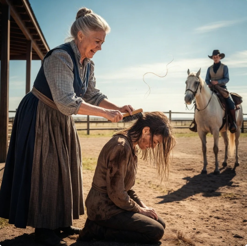 Las tijeras no estaban hechas para cabello humano. Tiraban, desgarraban, se atoraban en los nudos. Cada mechón que caía al suelo parecía arrancado con intención, no solo de humillarla, sino de borrarla. El polvo se llenó de hebras castañas rojizas, como si algo vivo estuviera muriendo frente a todos.