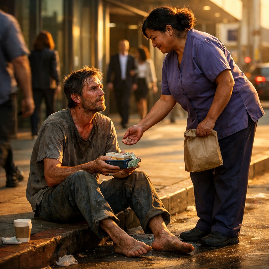 “I was wrong about all of it. The work. The exhaustion. The math. The shame. The way people stop seeing you. I was wrong about what poverty is, and I was wrong about who has dignity. You gave me food you couldn’t really spare. You gave me money that cost you something real. You treated me like a human being when I had absolutely nothing to offer you. And I’ve spent most of my life treating people with less as if they were a problem to solve or remove.”
