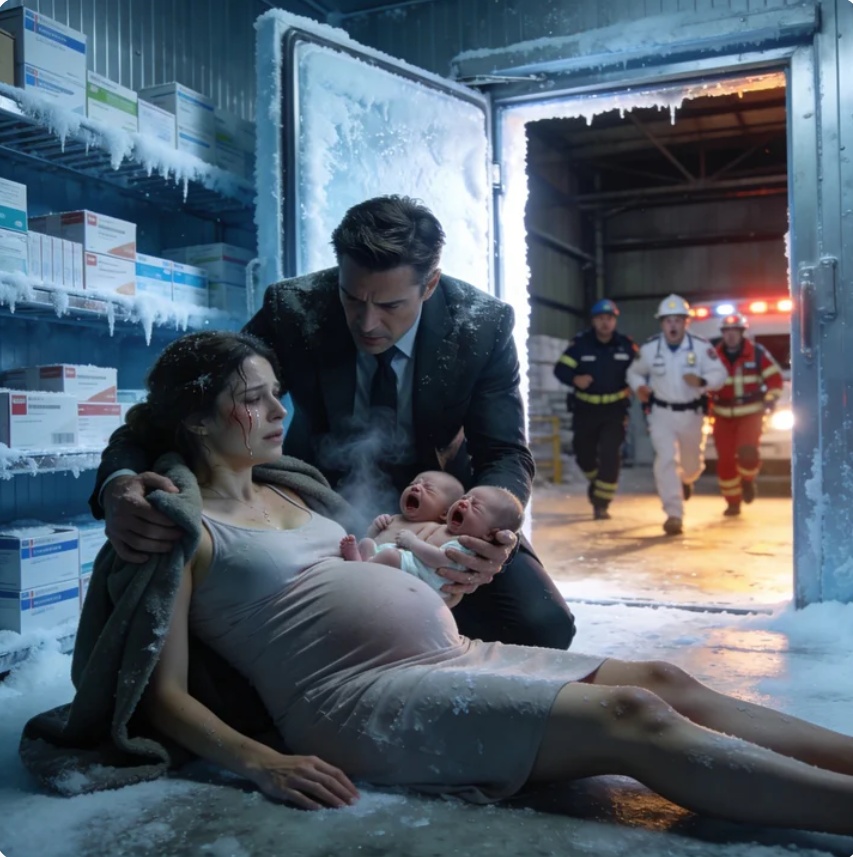 Grace was curled on the floor in a thin maternity dress, hair stuck to her face, lips pale, skin nearly blue. Frost clung to the shelves around her. The air looked white with cold.