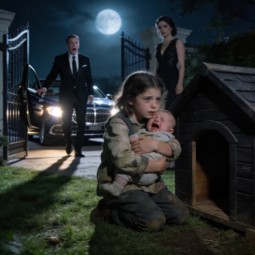 She kept one hand twisted in the back of Lily’s sweater and the other holding the doghouse door open like she was putting away trash. Oliver, only ten months old, was crying so hard he could barely catch his breath. Lily held him tighter, rocking him the way she had taught herself after too many nights with no one else coming.