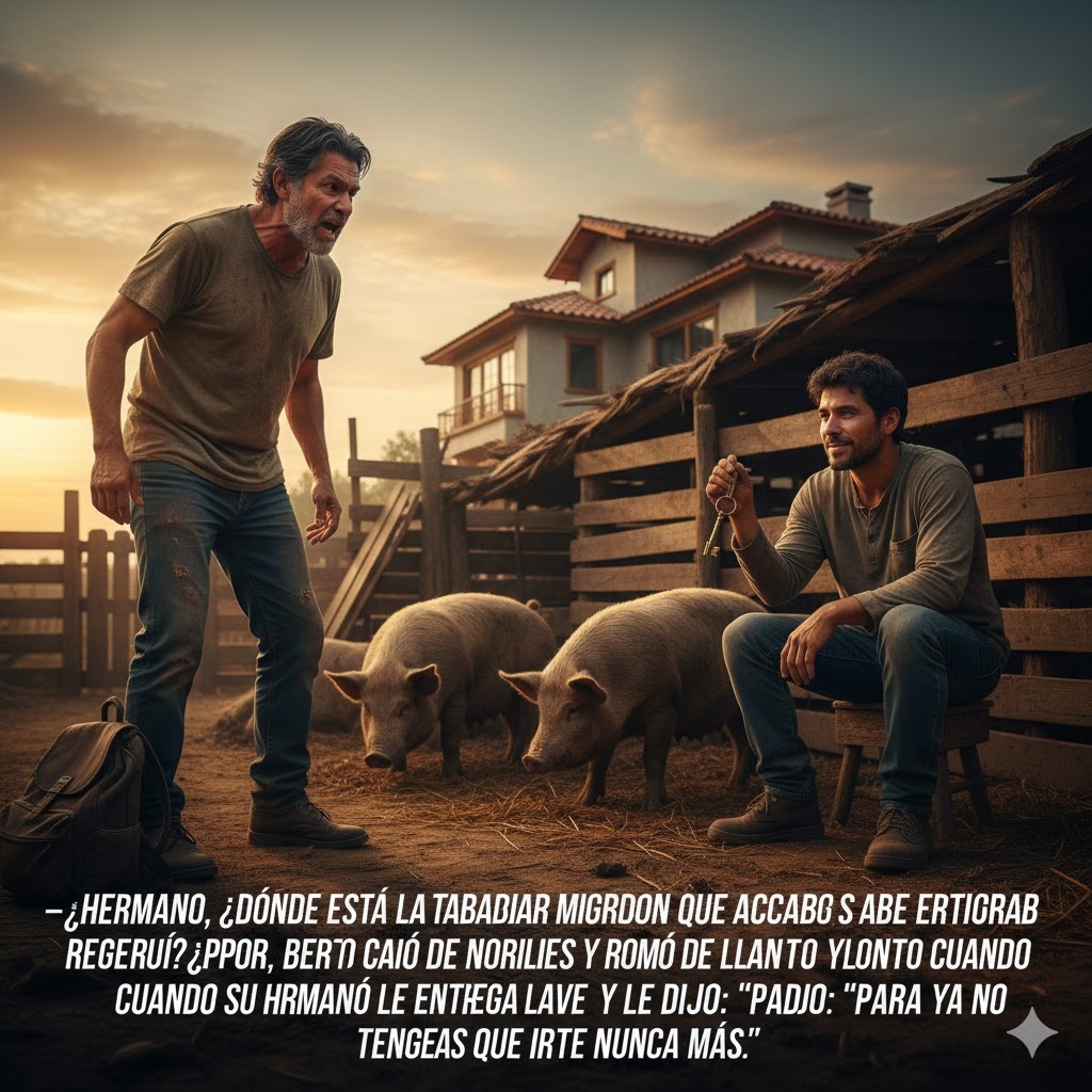 “¡Hermano, ¿dónde está la mansión que construí? ¿por qué estás durmiendo en un corral de puercos?!” — grito furioso del trabajador migrante que acaba de regresar, pero cayó de rodillas y rompió en llanto cuando su hermano le entregó una llave y le dijo: “para que ya no tengas que irte nunca más.”