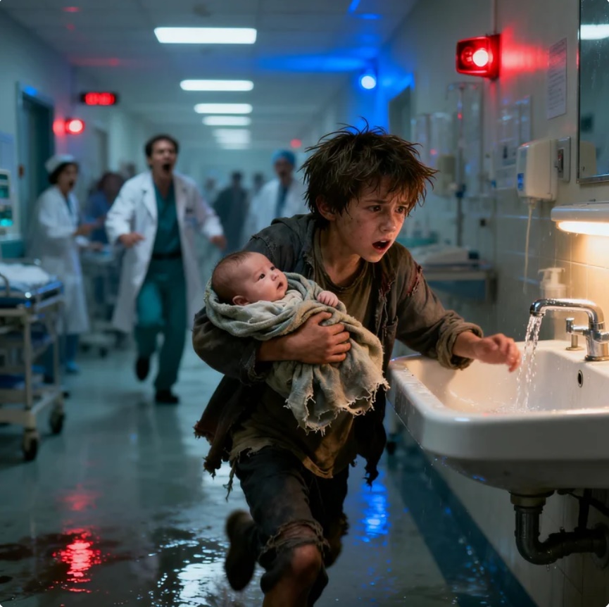 The winter rain fell on the city like a cold, gray curtain. Water streamed down the concrete streets, carrying trash and decaying leaves. Outside the large glass doors of the hospital, a boy stood huddled under the eaves, shivering in his soaking wet clothes.