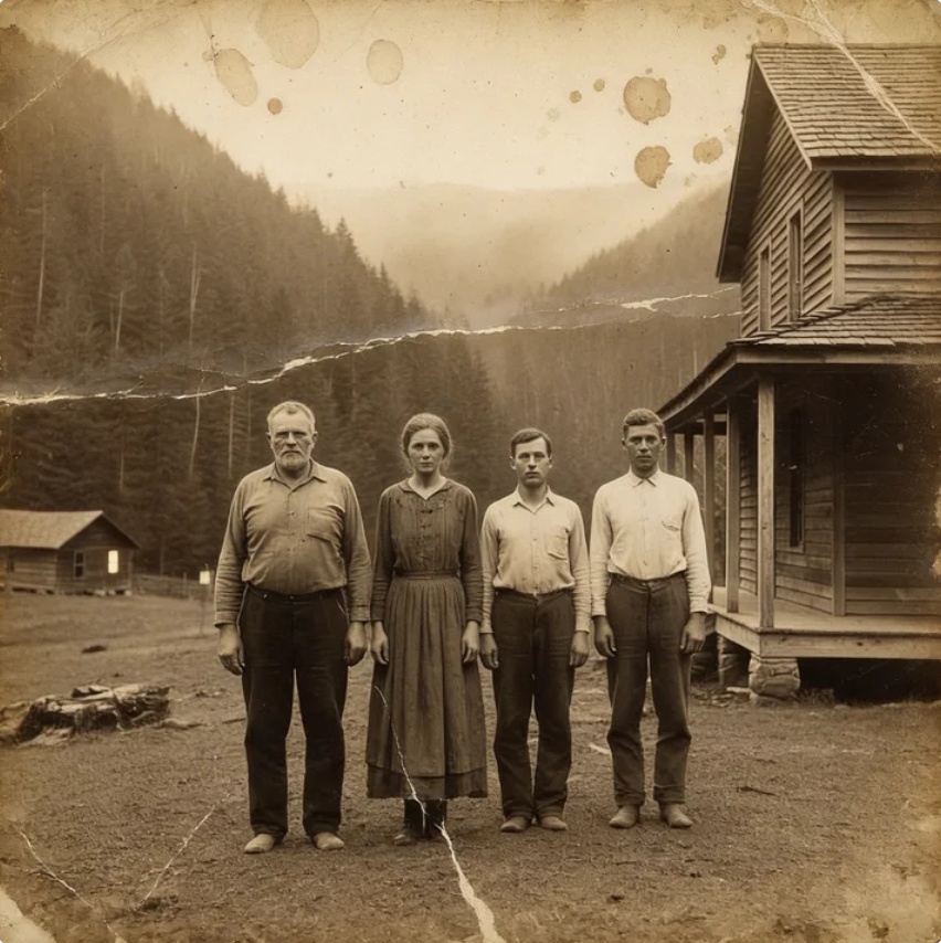 Osgood Hallbrook was the head of the family, a broad, hard man of fifty-eight with a face that looked carved out of mountain stone. He spoke little, worked constantly, and carried silence like it was something inherited. His wife, Dorret, had once been a schoolteacher before life narrowed itself into kitchen work, mending, and waiting. Their older son, Festus, was talkative and restless, with a handmade fiddle that never sounded quite right. Their younger son, Pernell, was the opposite—thin, watchful, and so still at times that people found themselves uneasy without knowing why.