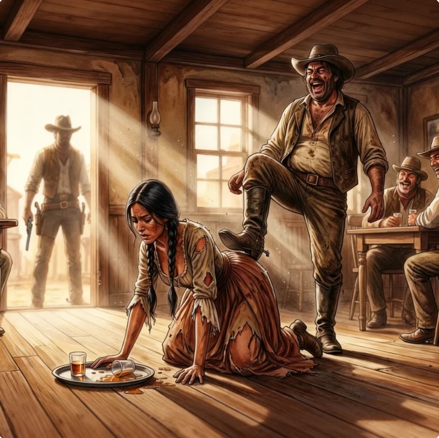 Cuando Ramiro Valdés la empujó frente a todos, la risa áspera del bandido se extendió como humo espeso entre las mesas. Las tablas crujieron bajo su caída. No dolió el golpe, sino la humillación. Durante años había soportado miradas sucias y roces disfrazados de descuido. No tenía padre ni marido que la defendiera, solo una dignidad guardada como moneda de oro bajo la lengua.