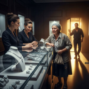 —Buenos días… —murmuró, apenas audible, mientras se acercaba a la vitrina iluminada donde brillaban collares, anillos y relojes de lujo.