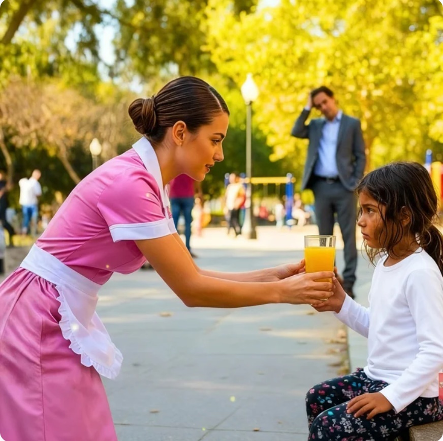 Todos los días, sin falta, a la misma hora exacta, la empleada de limpieza salía por la puerta trasera de la mansión con un vaso de jugo en la mano. No lo hacía durante su descanso ni cuando terminaba la jornada. Siempre era puntual, casi como un ritual.