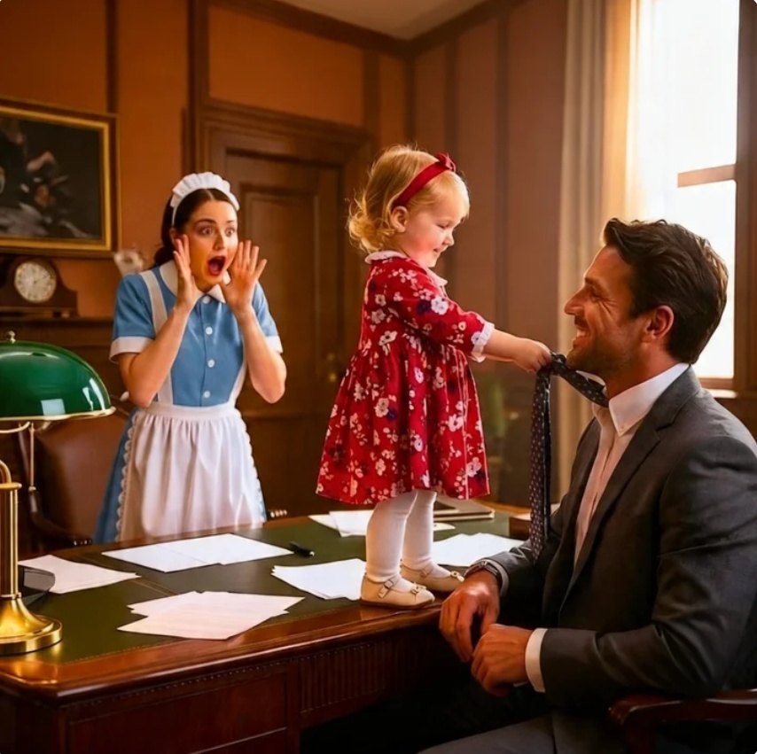 Fue en medio de una tarde cualquiera, mientras firmaba unos documentos, cuando sintió un tirón suave en la corbata azul marino que llevaba puesta. Bajó la mirada y encontró a Inés, una niña de seis años con ojos brillantes y una calma desconcertante, mirándolo como si no tuviera delante al dueño de la casa, sino a alguien mucho más cercano.