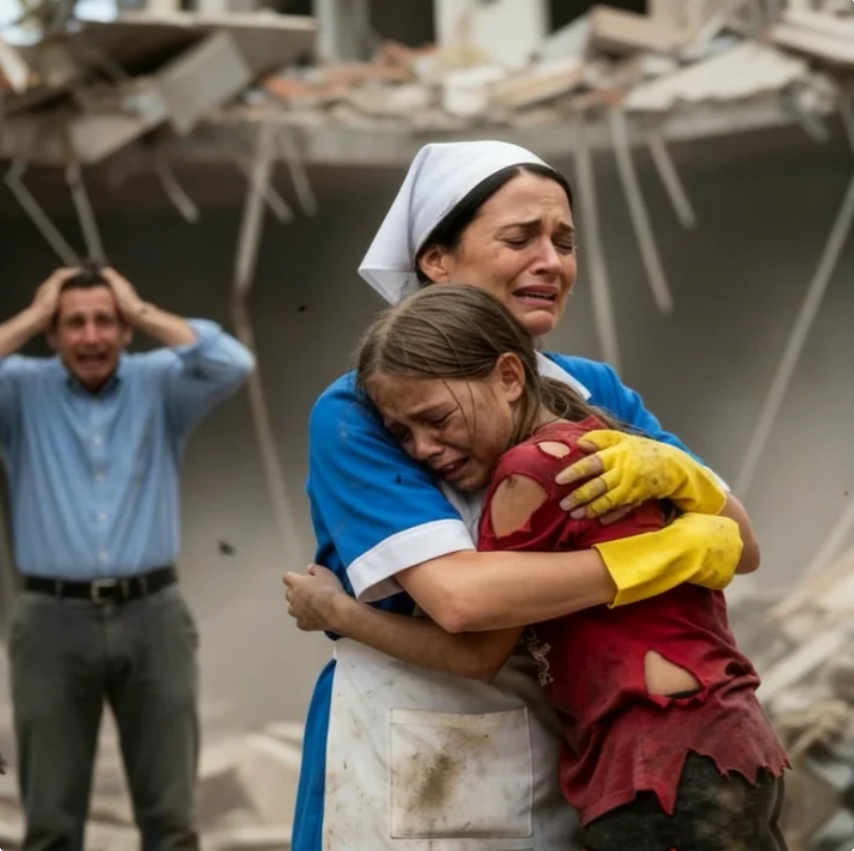 Isabela, con el vestido de seda rasgado, las mejillas manchadas de hollín y los ojos enormes llenos de terror, se aferró a ella con una desesperación tan pura que le partió el alma. Sus bracitos temblaban mientras rodeaban el cuello de la limpiadora, buscando refugio en el único abrazo que había llegado hasta ella en medio del caos. Esperanza la estrechó contra su uniforme gastado, sintiendo el latido atropellado de ese corazón pequeño, y una fuerza inesperada se levantó dentro de ella, una fuerza nacida del amor más simple y más feroz: proteger.