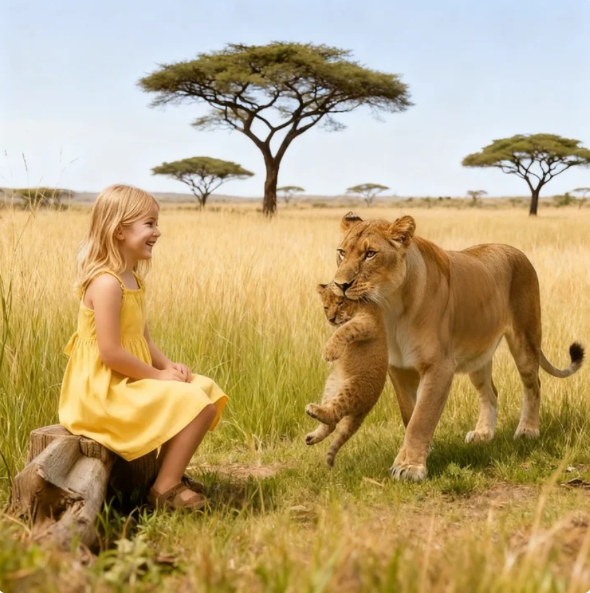 La leona lloró y llevó su cachorro a una niña para pedirle ayuda, entonces sucedió lo imposible.