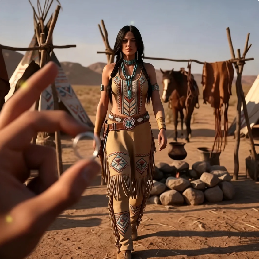 Por eso, cuando escuchó las carcajadas que venían del pozo, solo giró la cabeza con curiosidad. Allí estaban varias mujeres apaches, reunidas bajo la sombra escasa de un mezquite, hablando entre ellas. En medio del grupo destacaba Aidiana. No solo por su belleza —que la tenía—, sino por esa energía inquieta que parecía moverse con ella, como si el mundo a su alrededor siempre estuviera apenas a punto de volverse juego.