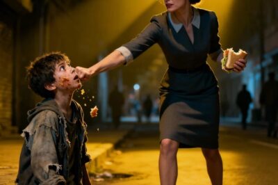 Una hermosa mujer abofeteó a un niño sin hogar y le tiró comida en la cara por ensuciar sus zapatos,…