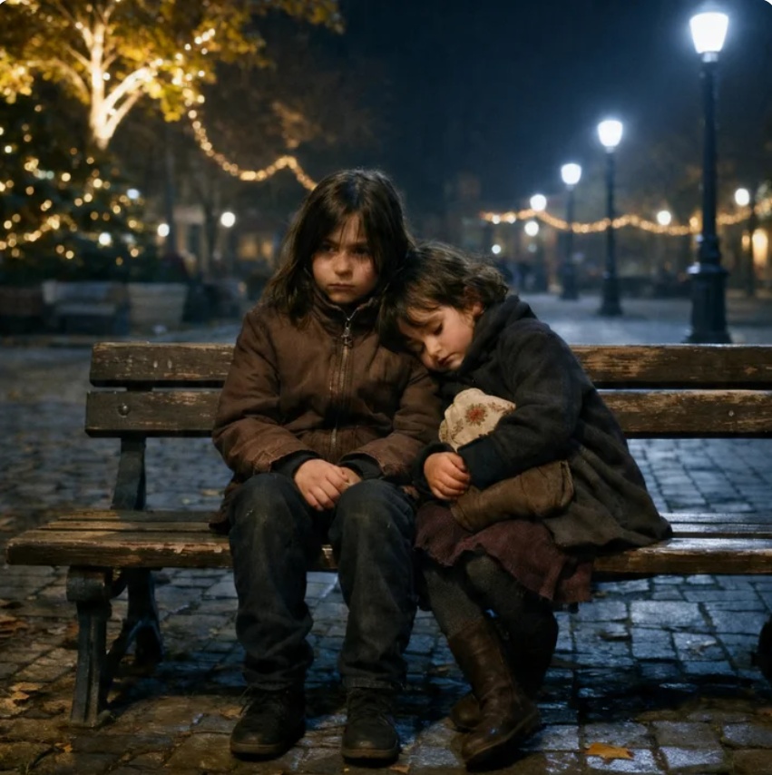 Aquella noche la plaza estaba vestida de luces, villancicos y risas ajenas. Las familias caminaban deprisa cargando bolsas, los niños corrían tras los globos y el aroma a pan dulce y chocolate caliente parecía envolverlo todo con una alegría que no alcanzaba a todos. En el banco más apartado, bajo un árbol sin adornos, dos niñas esperaban a quien no volvería.