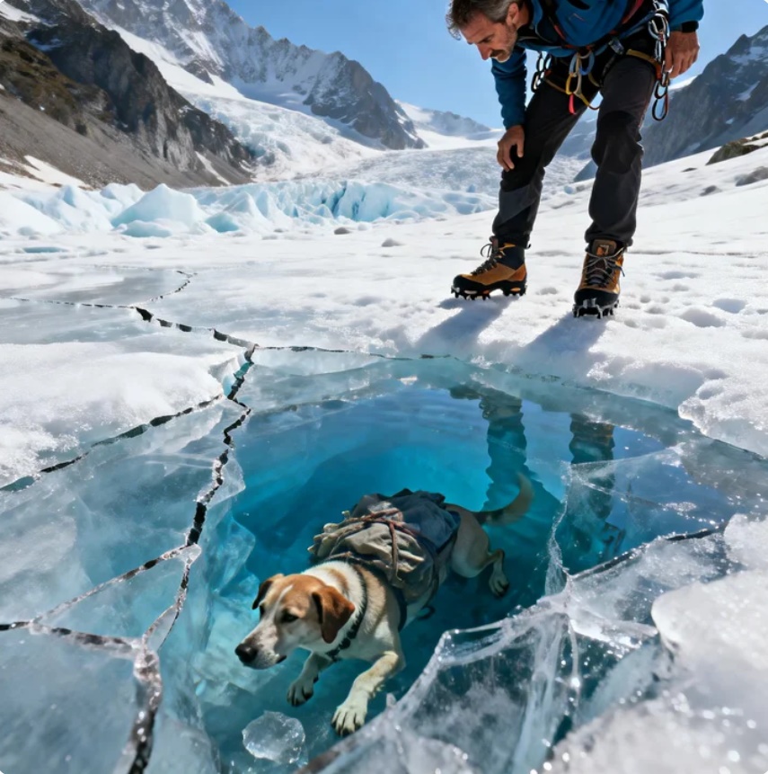 Lo encontraron inmóvil dentro del glaciar… y el perro llevaba una carga que no debía existir.