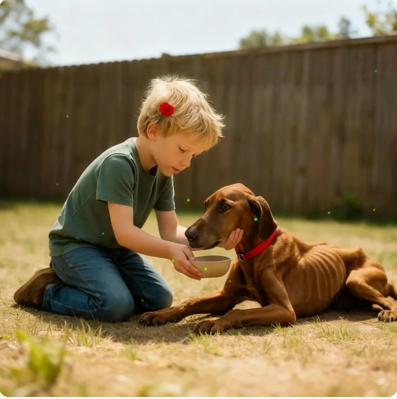 sostenía con firmeza en sus brazos delgados al perro que había encontrado abandonado en la calle, ignorando los