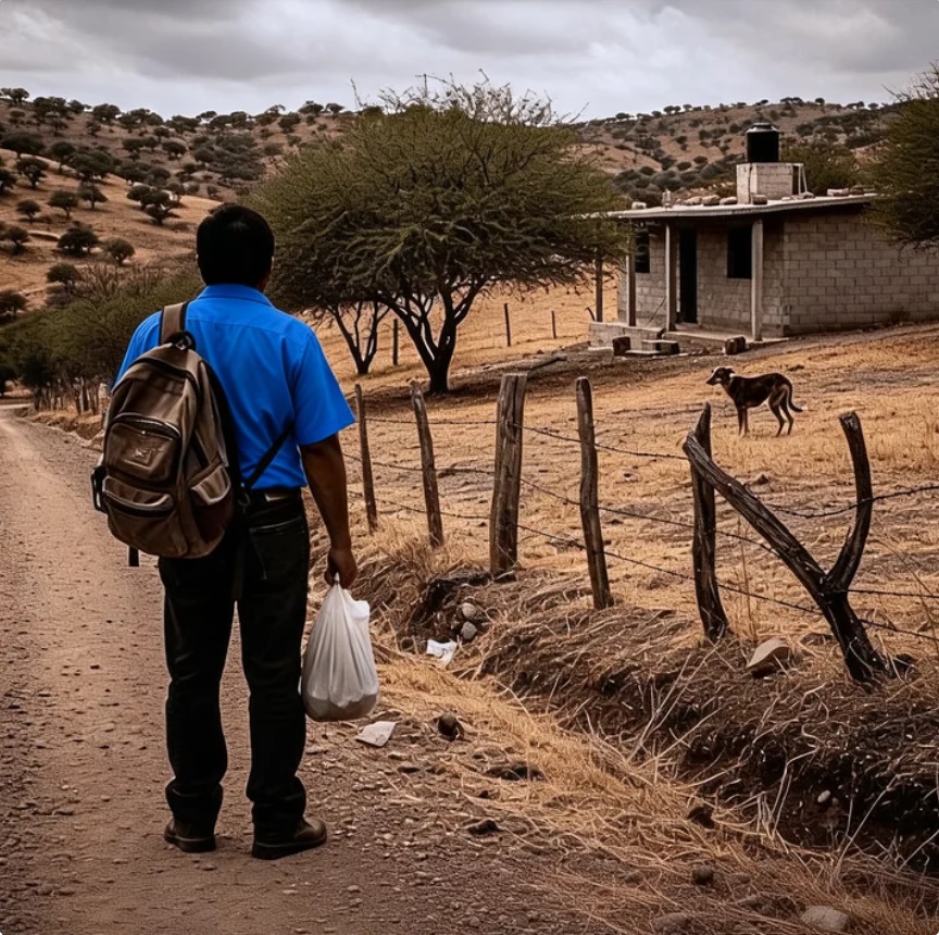 —De ahí sigue a pie —dijo el conductor señalando un sendero entre mezquites.