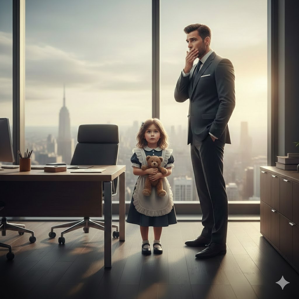 “Mamá está enferma, así que vine yo”. Una niña de 5 años entró a la oficina del CEO con un uniforme enorme. Lo que él hizo después cambió sus vidas para siempre…