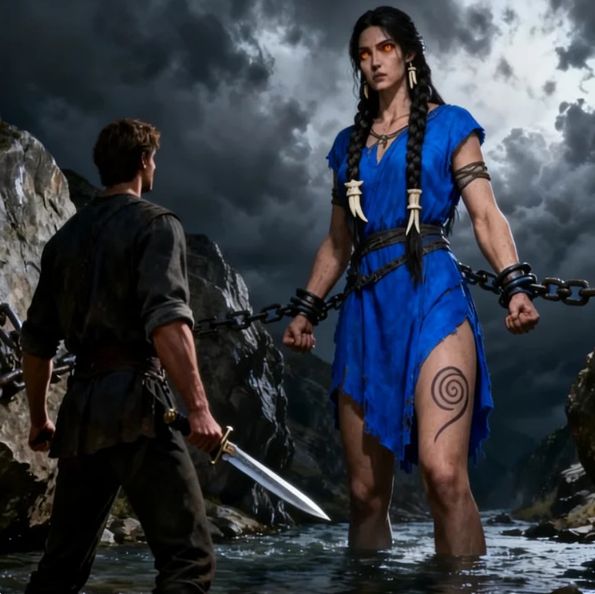 Me acerqué hasta que su rodilla quedó a la altura de mis ojos. La marca estaba allí, tal como los ancianos dijeron: una espiral quemada en su piel, pálida y luminosa contra el bronce cálido de su pierna.