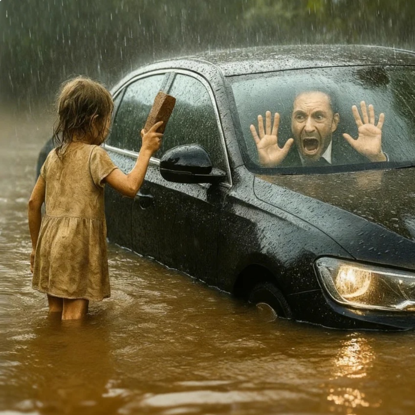 Una silueta pequeña, empapada, aferrándose al vidrio. Una niña. Con una piedra en la mano, golpeaba sin rendirse. Una y otra vez. Hasta que el cristal cedió.
