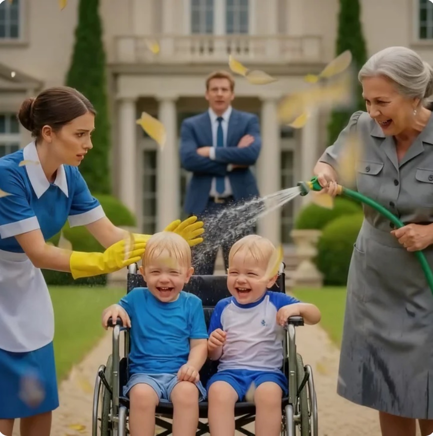 hijos Andrés y Santiago estaban sentados juntos en una silla de ruedas especial,