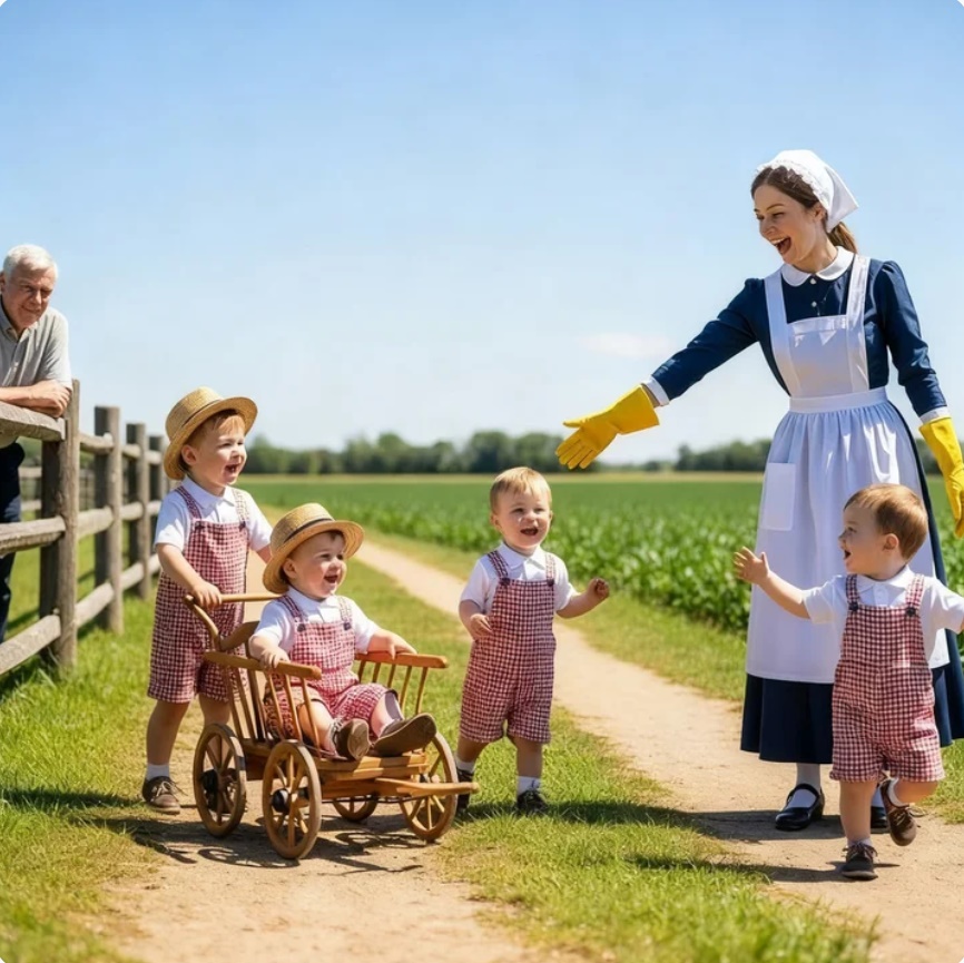 rubias, sus sombreros de paja, sus mejillas sonroadas por el esfuerzo. Los