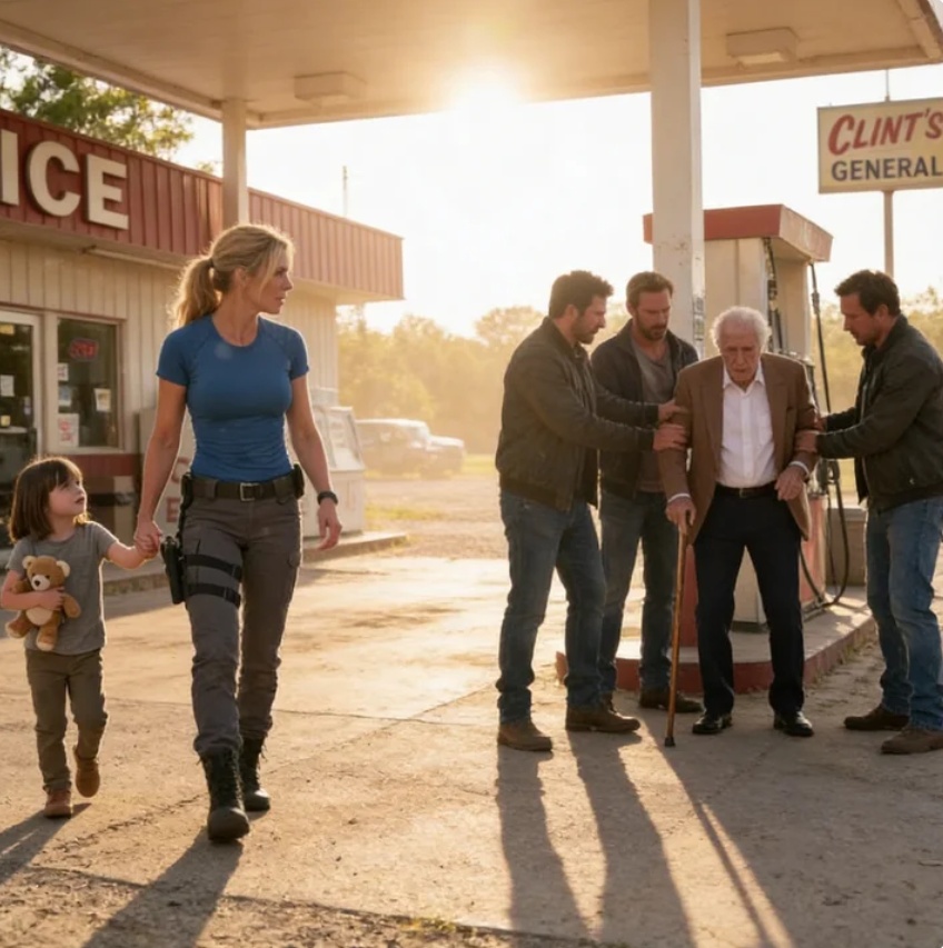 Her eyes flicked once to the old man—fear, dignity, exhaustion—then back to the man in front of her.