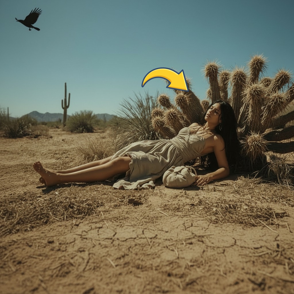 El tercer día, el silencio se hizo abrumador. Ni siquiera el viento se atrevía a soplar. La sed era insoportable. San tomó el cuchillo con manos temblorosas, sabiendo que este podría ser el fin. Lo observó bajo el sol abrasador, brillando como una promesa de liberación. Pero justo cuando su canto de muerte comenzaba a llenar el aire, un ruido la hizo detenerse. Cascos de caballo. Seis jinetes se acercaban, levantando polvo en el horizonte.