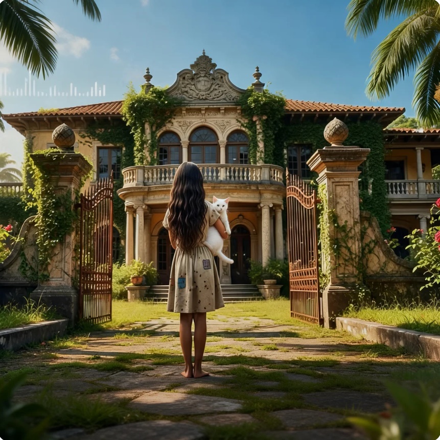 llenas de polvo flotante. La luz del día, la mansión se veía menos aterradora