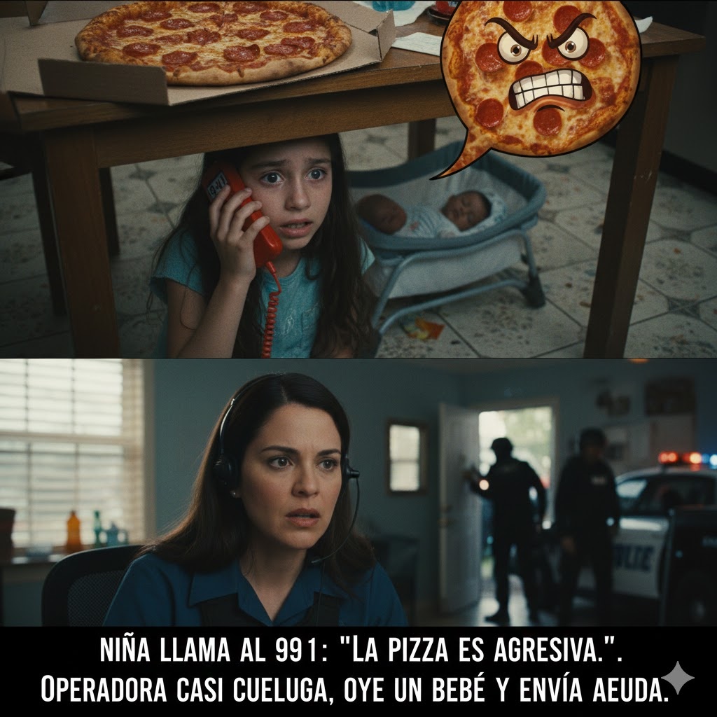Una niña pequeña llama al 911 y dice, “La pizza está agresiva.” El operador