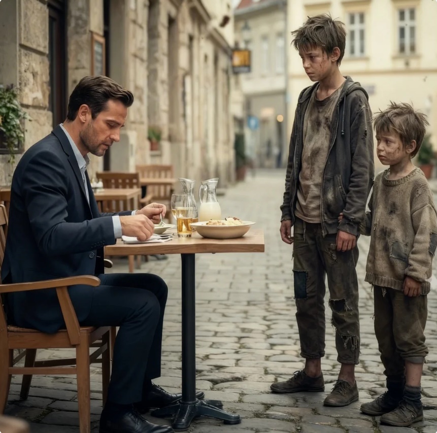 —Por favor —dijo el mayor—. Solo un poco de pan… mi hermano no ha comido en dos días.