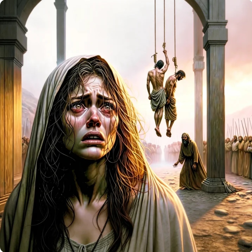 El reino atravesaba entonces una sequía devastadora. Durante tres largos años la tierra se agrietó, los ríos se redujeron a hilos de desesperanza y el hambre oprimía al pueblo. El rey David, angustiado, buscó respuesta en el Señor. Y la respuesta fue dura: la sequía era consecuencia de la sangre derramada por Saúl contra los gabaonitas. Para saldar esa deuda, se decretó un sacrificio: siete descendientes de Saúl debían ser entregados.