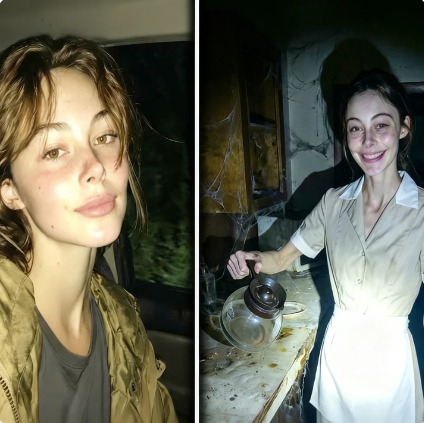 Dentro, entre mesas cubiertas de polvo y telarañas, una joven se movía con precisión mecánica. Vestía un uniforme de camarera impecable, como salido de otra época. Su sonrisa era rígida, antinatural. Se acercaba a mesas vacías, tomaba pedidos inexistentes, y luego servía café imaginario en tazas que no estaban allí.