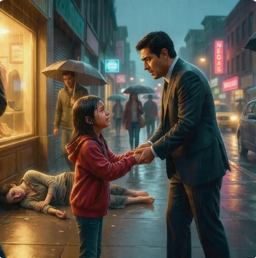 Las palabras salieron temblorosas, desiguales, como si fueran demasiado pesadas para una niña tan pequeña. Se plantó delante del hombre sin medir la distancia, con las manos heladas apretadas contra el pecho y la sudadera fina pegada al cuerpo. Él, un multimillonario acostumbrado a que el mundo se abriera a su paso, se detuvo por pura sorpresa. Dio medio paso atrás, tensó los hombros y levantó una mano en un reflejo incierto, no por crueldad, sino por esa incomodidad que produce el dolor ajeno cuando irrumpe sin permiso.