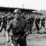 el estante con manos temblorosas, como sus hombros se tensaban bajo el uniforme