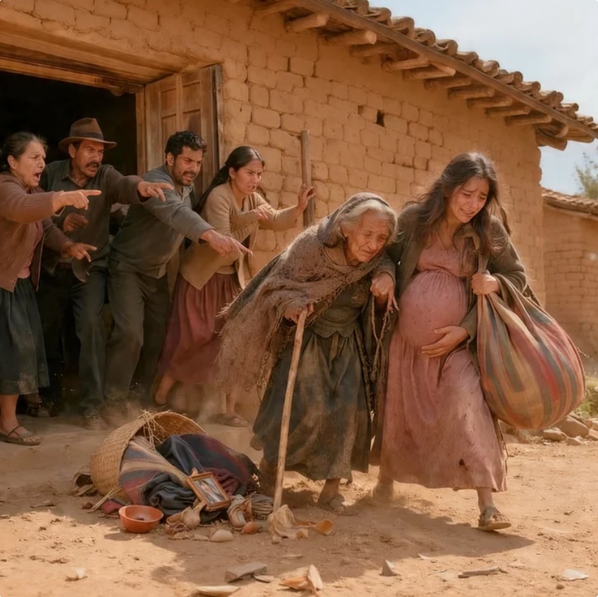 En la parte más seca del valle, donde el viento arrastraba polvo caliente sobre caminos agrietados y la tierra parecía haber olvidado cómo dar vida, caminaban Teresa y su hija Lucía bajo el peso de la humillación. Teresa, con el cabello completamente blanco recogido en un moño sencillo, llevaba una pequeña bolsa de tela con sus pocas pertenencias. A su lado, Lucía avanzaba despacio, una mano sobre el vientre de siete meses y la otra secándose las lágrimas que no dejaban de caer.