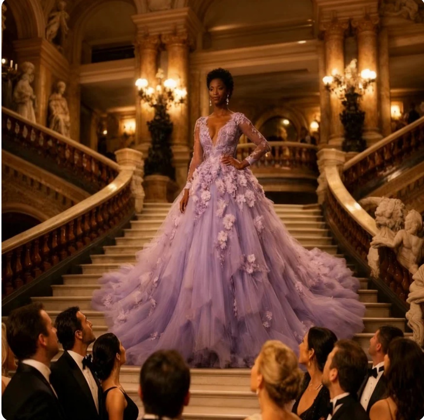 que había reservado para ella un vestido lila bordado con flores tridimensionales.