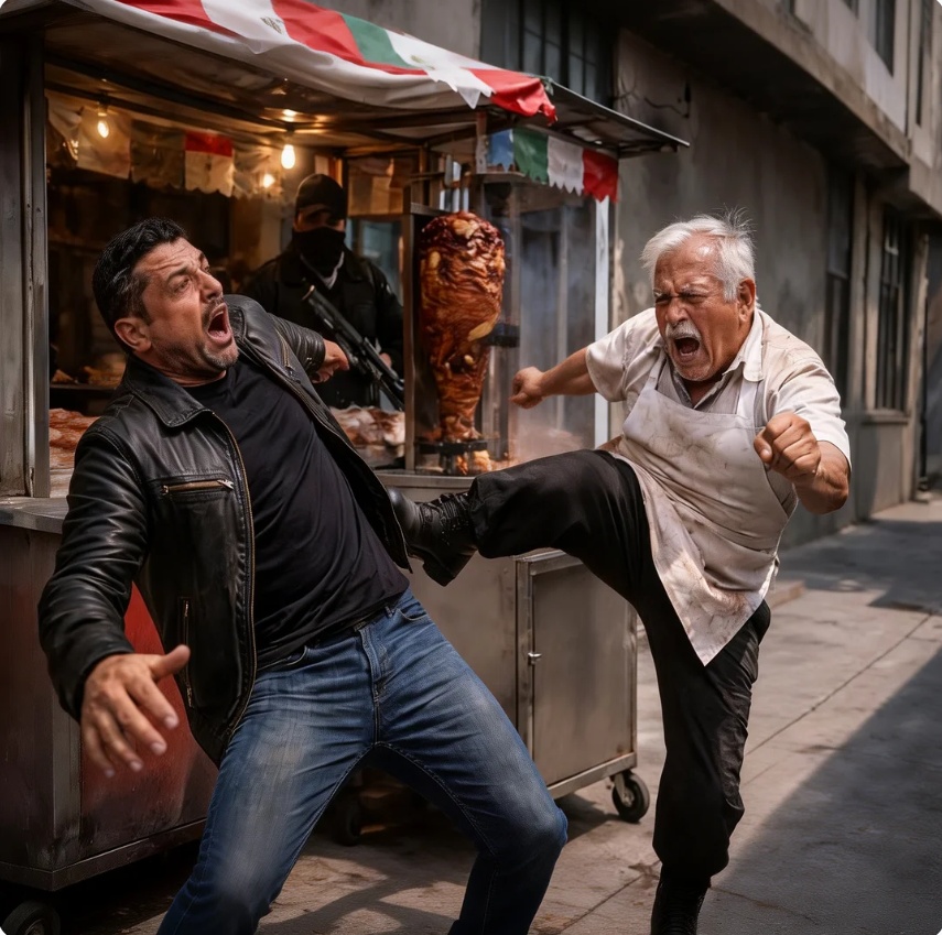 Don Manuel cayó contra el mostrador de la taquería, con la mejilla ardiendo y la mirada baja. A su alrededor, los clientes quedaron inmóviles. Nadie se atrevió a levantarse. Nadie se atrevió a decir una palabra.