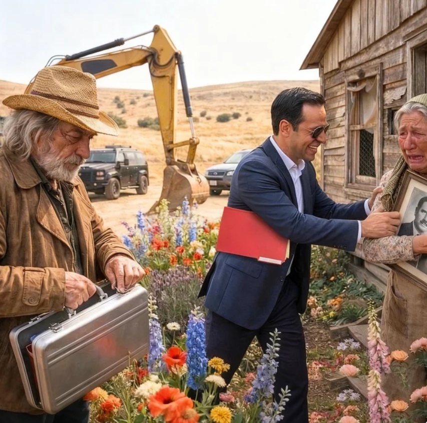 Aquella mañana, el campo despertó con un ruido que no pertenecía a su calma. No era el canto de los gallos ni el susurro del viento entre los árboles viejos, sino el rugido áspero de motores que parecían anunciar una desgracia inevitable. Dos camionetas negras, relucientes y ajenas a la humildad del lugar, se detuvieron frente a la pequeña casa de madera donde doña Blanca había vivido casi toda su vida. Detrás de ellas, una excavadora amarilla avanzaba lentamente, como una bestia pesada que no conocía la compasión.