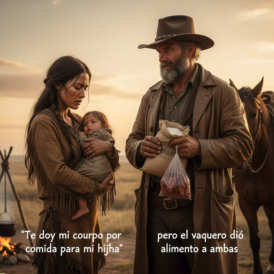 Cuando Hernán regresó a su cabaña solitaria, encontró huellas desesperadas en la tierra y una mujer apache exhausta