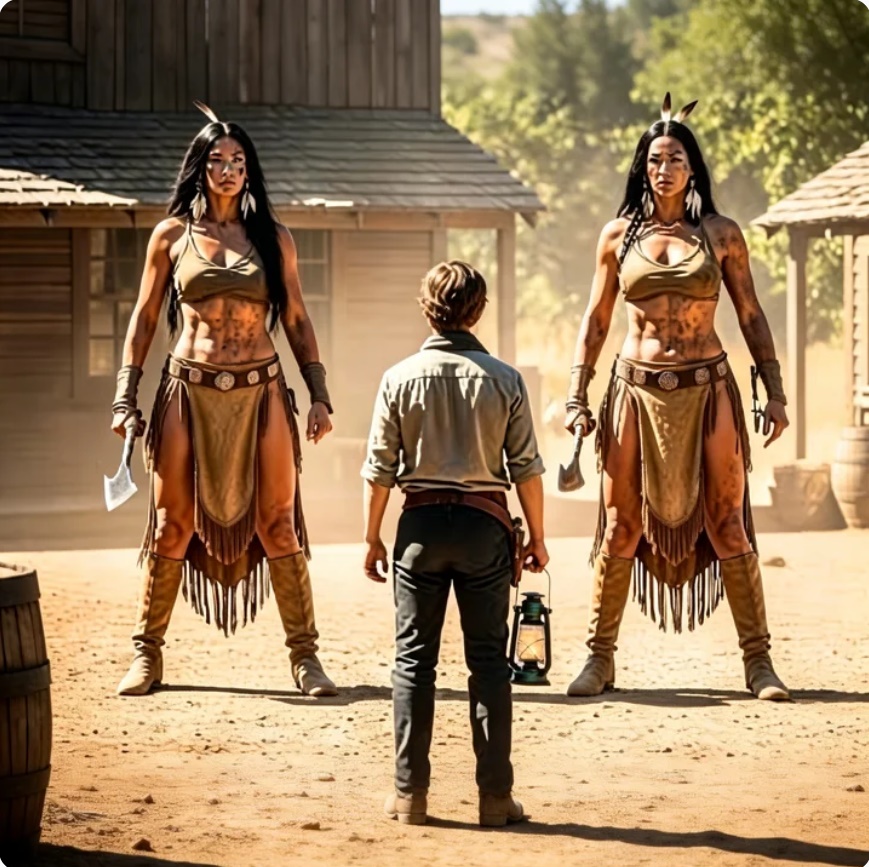 Dentro encontró a dos figuras altas, de hombros anchos, la piel bronceada cubierta de tierra. Cabellos negros caían pesados por sus espaldas mientras hurgaban en un saco de harina de maíz. Eran hermanas apache: Baera Kohane y la más joven, Eshira Nahwen. Sus cuerpos, firmes como piedra viva, estaban marcados por cicatrices antiguas y recientes. Mapas de una vida perseguida.