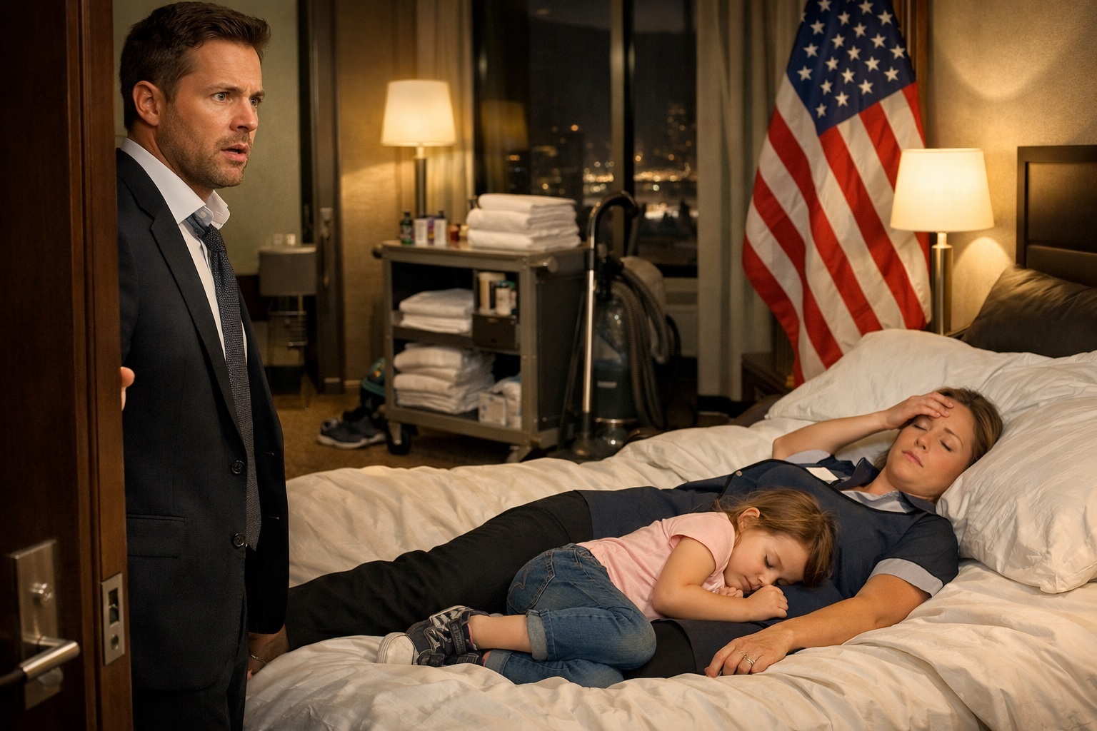 The billionaire caught a poor janitor and her daughter sleeping on his hotel bed… and what he did next shocked the entire city…