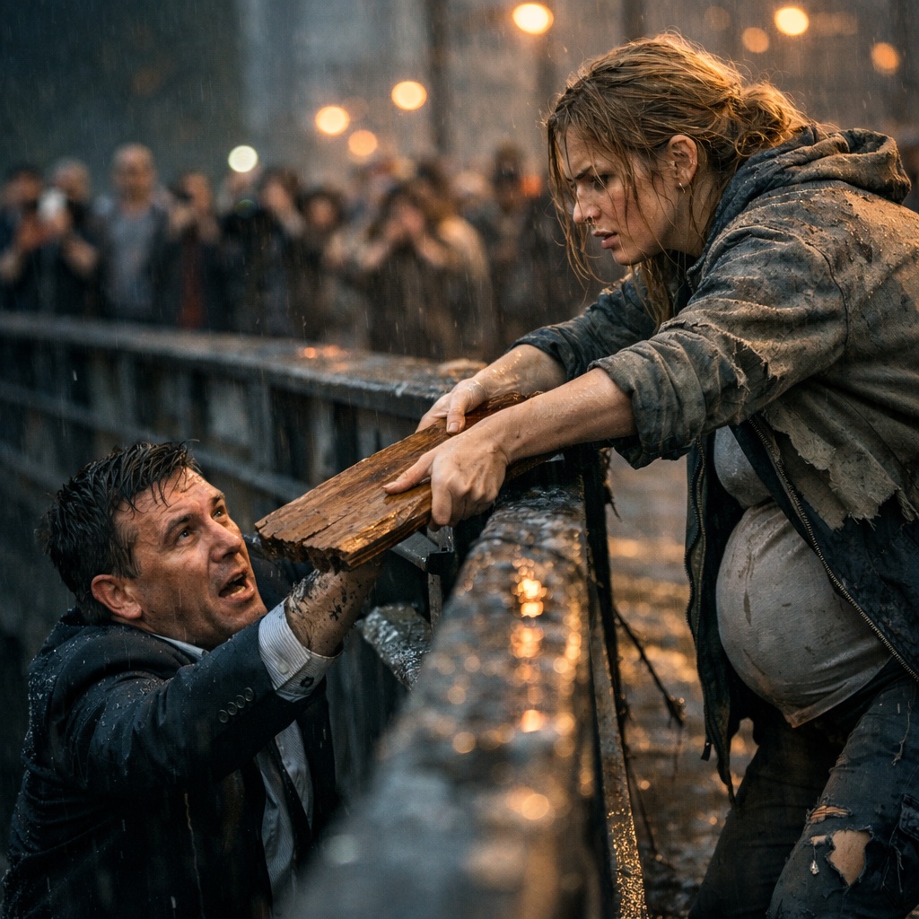 The man who controlled billion-dollar deals, who could destroy careers with a sentence, was now hanging off the edge of a bridge—his fingers slipping, his body shaking, his life measured in seconds.