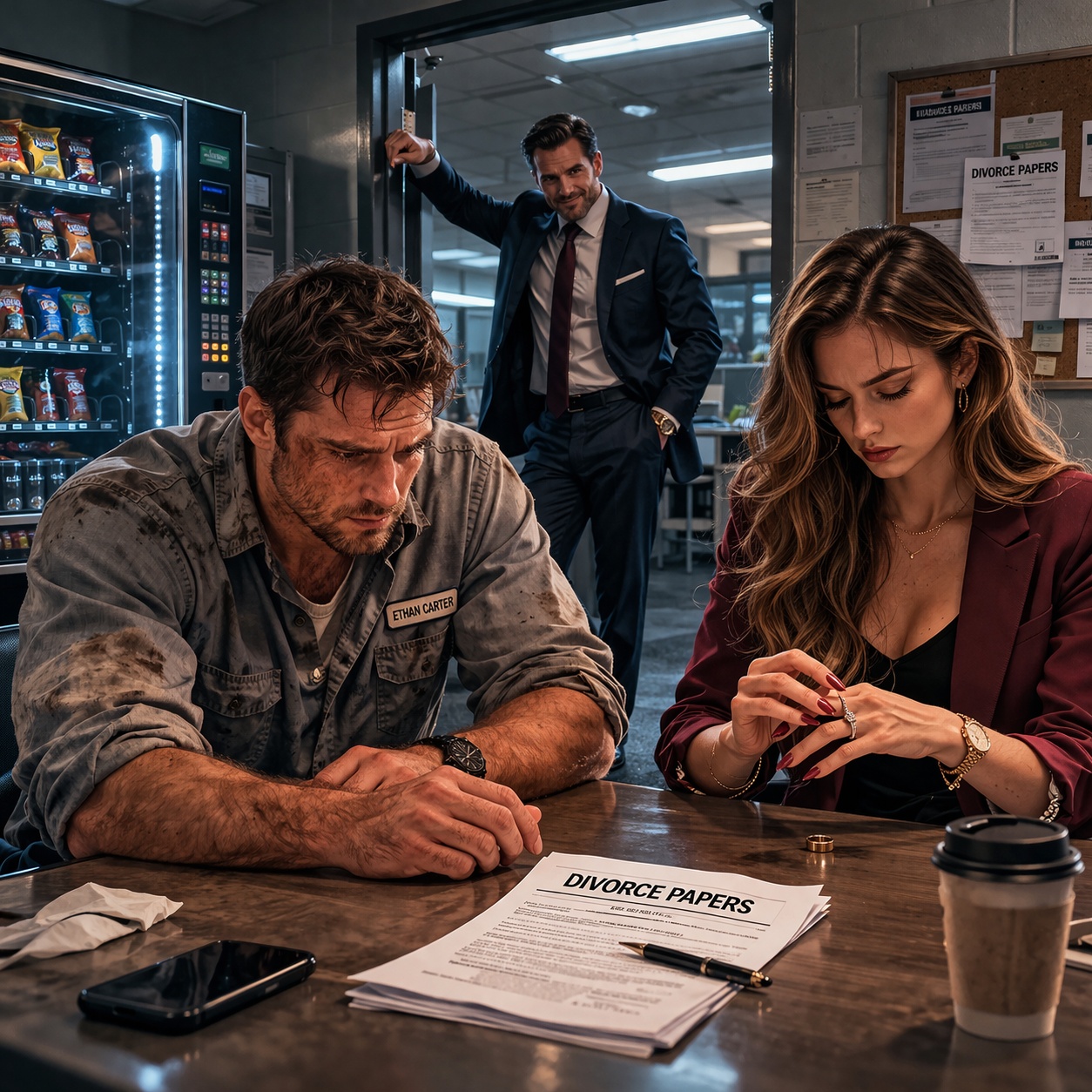 She handed me divorce papers in the break room… while my boss stood behind her like he’d already won.