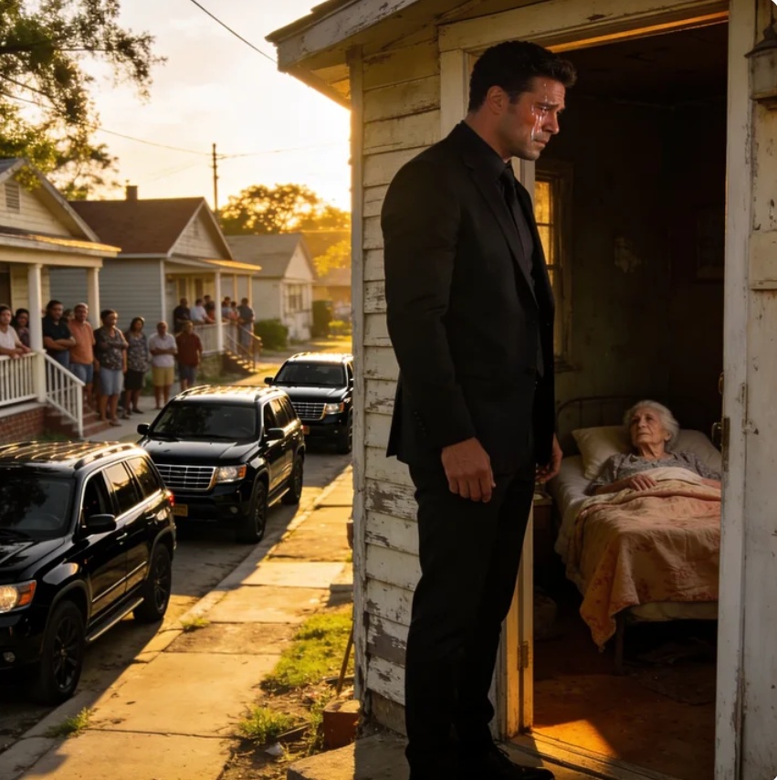 By evening, people sat on porches talking not about the black SUVs or the bodyguards or the expensive suits—but about the old woman in the tiny house who had once fed a bruised boy because she couldn’t stand the sound of him going hungry.