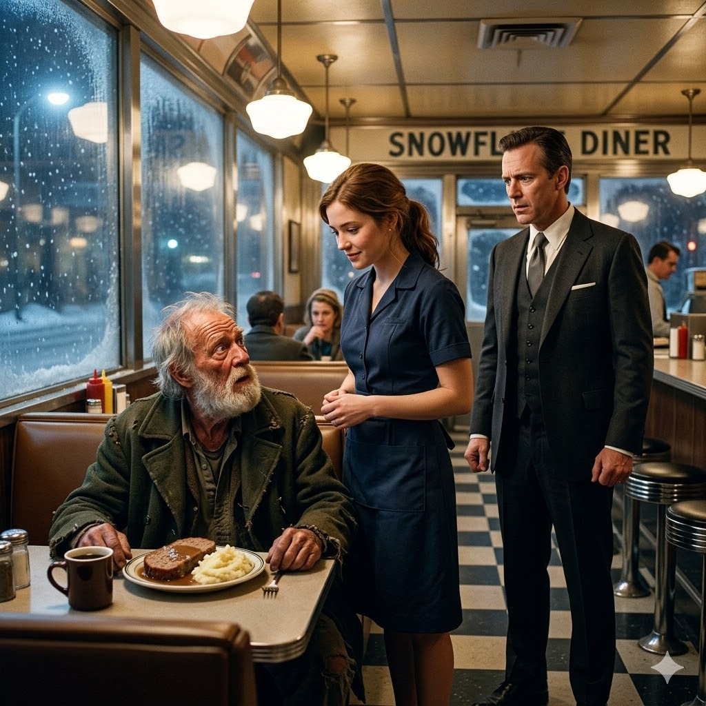 The diner hummed quietly around them. Dishes clinked. A kid laughed near the counter. The snow outside had started again, light and steady against the windows. It was absurd, almost, that a whole life could come apart and begin again in a place serving pie and burnt coffee.