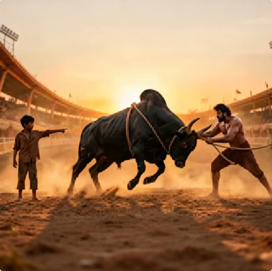 El campo del pueblo parecía una feria. Tambores sonaban sin descanso, la multitud gritaba y apostaba. En el centro, atado con gruesas cuerdas, había un toro enorme.