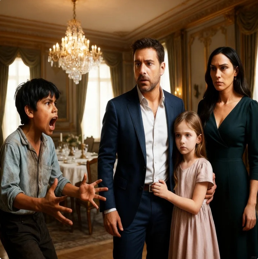 Emilio, el hijo de Teresa, la empleada doméstica, estaba sirviendo agua. Tenía apenas nueve años, ropa modesta, el cabello revuelto y una mirada demasiado despierta para su edad. Había observado a Isabela demasiadas veces tocarse el estómago en silencio, pedir comida con miedo y quedarse mirando los platos ajenos como quien mira un mundo prohibido.
