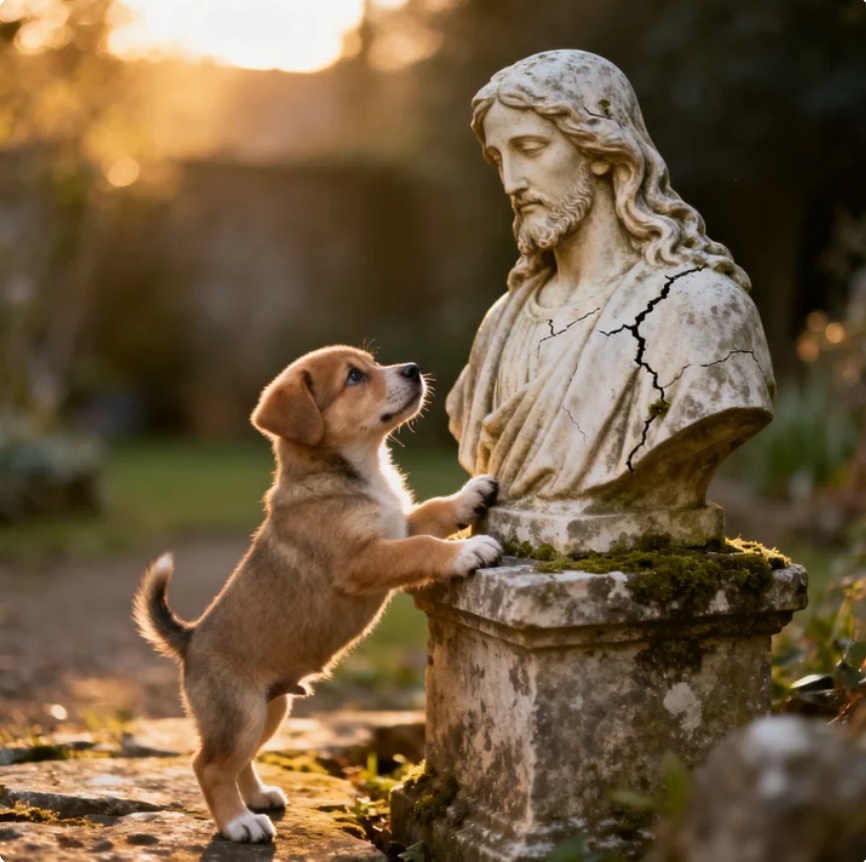 Lo que comenzó como un cachorro temblando frente a una estatua se convirtió en un milagro. No tallado en piedra, sino escrito en la devoción silenciosa de una madre, su hijo y una mujer que volvió a creer.