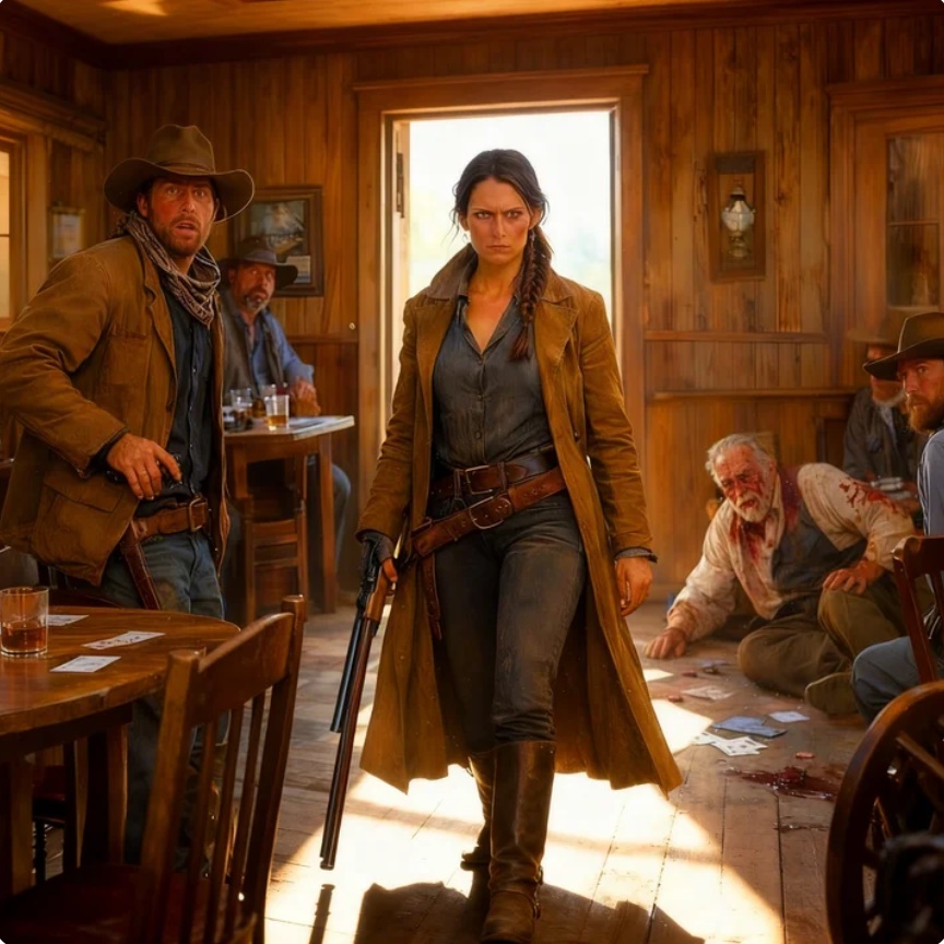 —Todavía no —respondió Clara—. Primero ayudas a mi padre a levantarse. Luego pagas su copa. Después montas tu caballo y sales de este territorio. Y no vuelves jamás.