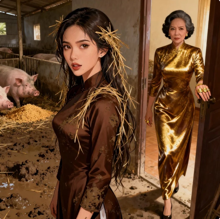 Un fino trozo de papel blanco cayó sobre el altar ancestral, justo delante de los retratos de sus suegros. Cada palabra era como una aguja que le atravesaba el corazón en paz. «Firma esto, X». La voz de Lam Phong sonaba fría y distante, desprovista de la calidez del pasado. Allí estaba, con la camisa almidonada y su hermoso rostro inexpresivo. A su lado, otra mujer lo sujetaba del brazo posesivamente. Era Vi, hermosa y elegante, con la mirada llena de provocador desprecio. «Phong, ¿por qué? ¿Qué nos prometimos?». Su voz tembló y se quebró. Aún llevaba su traje tradicional vietnamita marrón oscuro, y su largo cabello aún se aferraba a algunos hilos de paja seca después de un día de trabajo en la granja de cerdos detrás de la casa. El olor a pienso para cerdos, el olor a barro y tierra que una vez creyó que era el olor de la vida. Ahora se había convertido en la razón de este colapso. «Estoy harta del olor a cerdo que llevas». Se miró para ver si se parecía a la esposa de un gerente de ventas. Estoy harta de tener que caminar junto a una campesina. Solo piensa en cerdos y salvado. Es cierto. Esta familia tiene muy mala suerte de haber traído una carga como tú a casa. Su suegra, la señora Hanh, salió de la habitación. Llevaba un lujoso vestido de seda, los dedos adornados con anillos de oro, y su mirada penetrante recorrió a su nuera. «Durante tres años no le has dado un solo heredero a esta familia, solo para estar preocupada por esos cerdos sucios. Mi hijo trabaja duro, y cuando llega a casa y te ve, se le va el entusiasmo. Vi, tú eres la que merece ser mi nuera; eres hermosa, talentosa y de buena familia». «Eres demasiado amable, tía. Lo siento por Phong». Vi se apoyó en Phong, con voz dulce, pero cada palabra era como sal en una herida. «Madre, no la llames madre nunca más. No tienes derecho». La voz de Phong era áspera. Tomó el bolígrafo de la mesa y se lo puso a Lan en la mano. “Firma rápido para que pueda tener tiempo para otras cosas. No quiero perder ni un segundo más contigo”. Las lágrimas corrían por su rostro. Miró al hombre que una vez amó con todo su corazón, a su suegra, a quien tanto se había esforzado por cuidar, y al tercero que se regodeaba en su dolor. El solemne altar ancestral que había tras ellos parecía reprocharle también a ella.